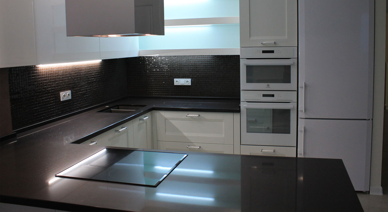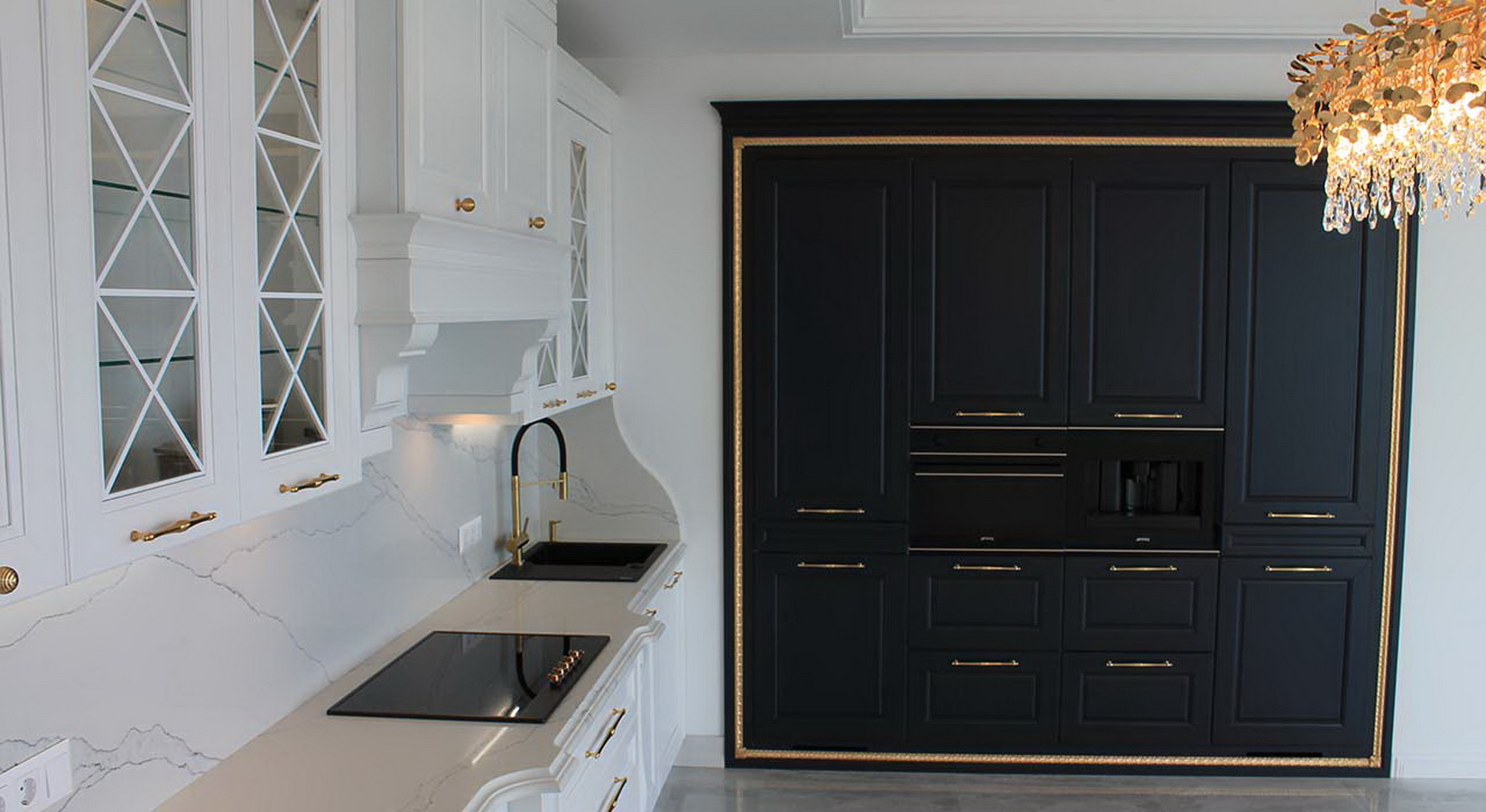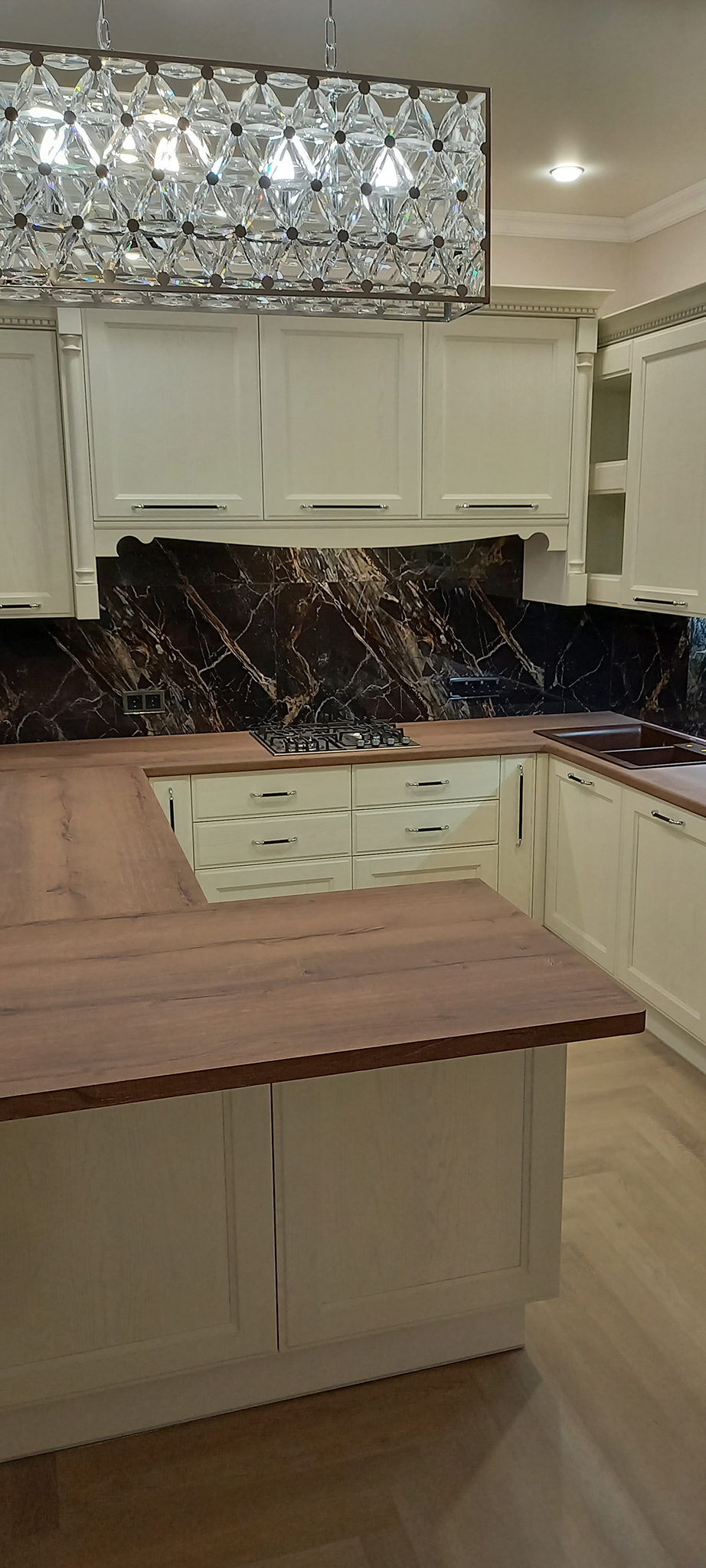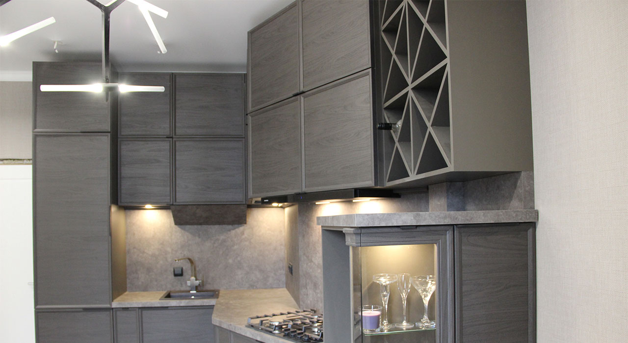 Our specialists are ready to provide their services at every stage of the work. However, it is best to take advantage of their knowledge and skills from the very beginning of the project.The designer-constructor will accurately calculate the area of the kitchen and suggest the optimal layout of the furniture, its number, arrangement, and the material from which it will be made. The master has extensive professional experience, and it is worth following his opinion.Once you have decided on the furniture, you can proceed to the selection of finishing materials for the kitchen. These include tiles, wallpaper, floor coverings, door color and shape, and more.