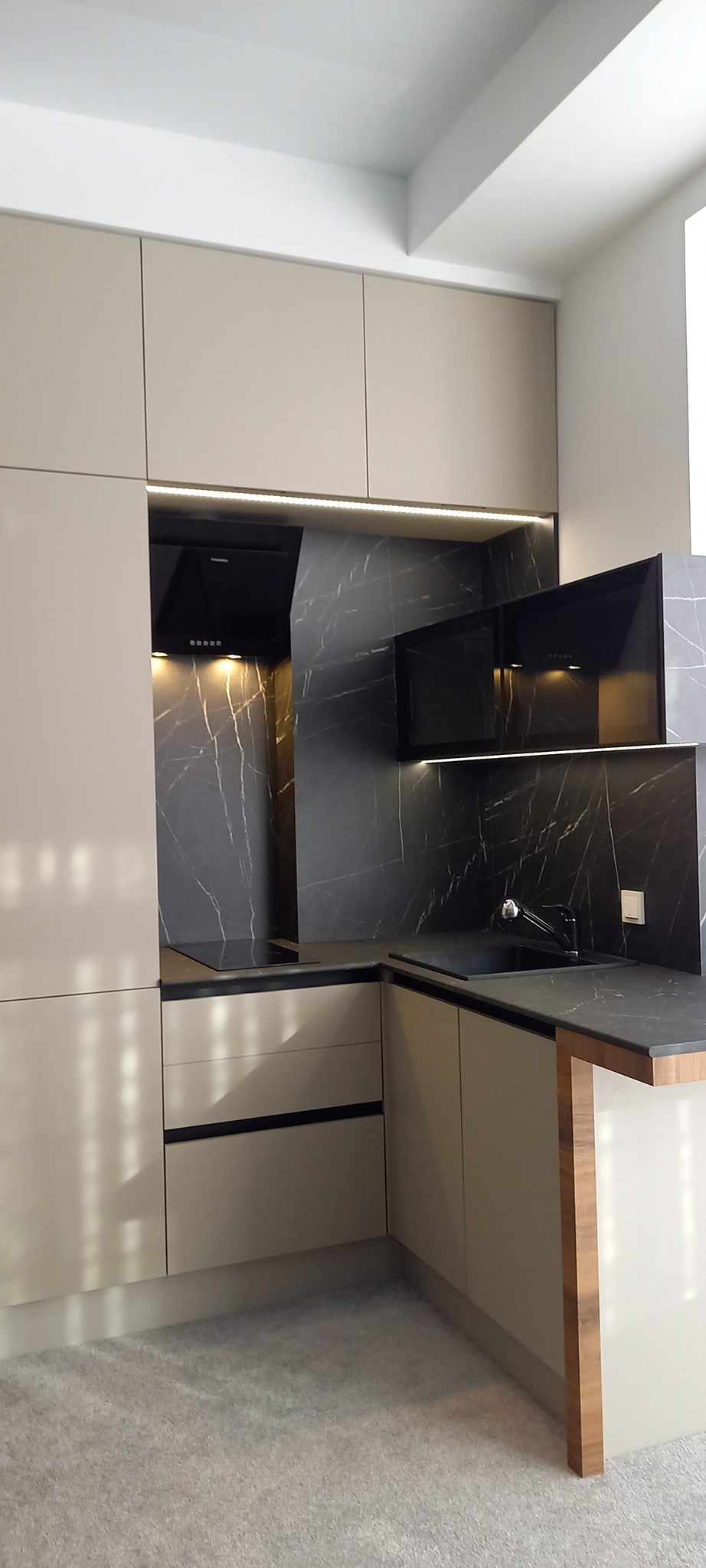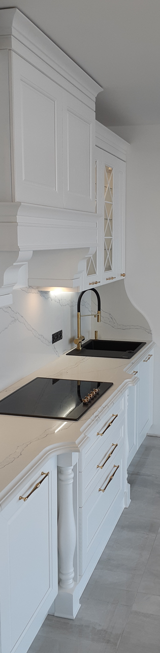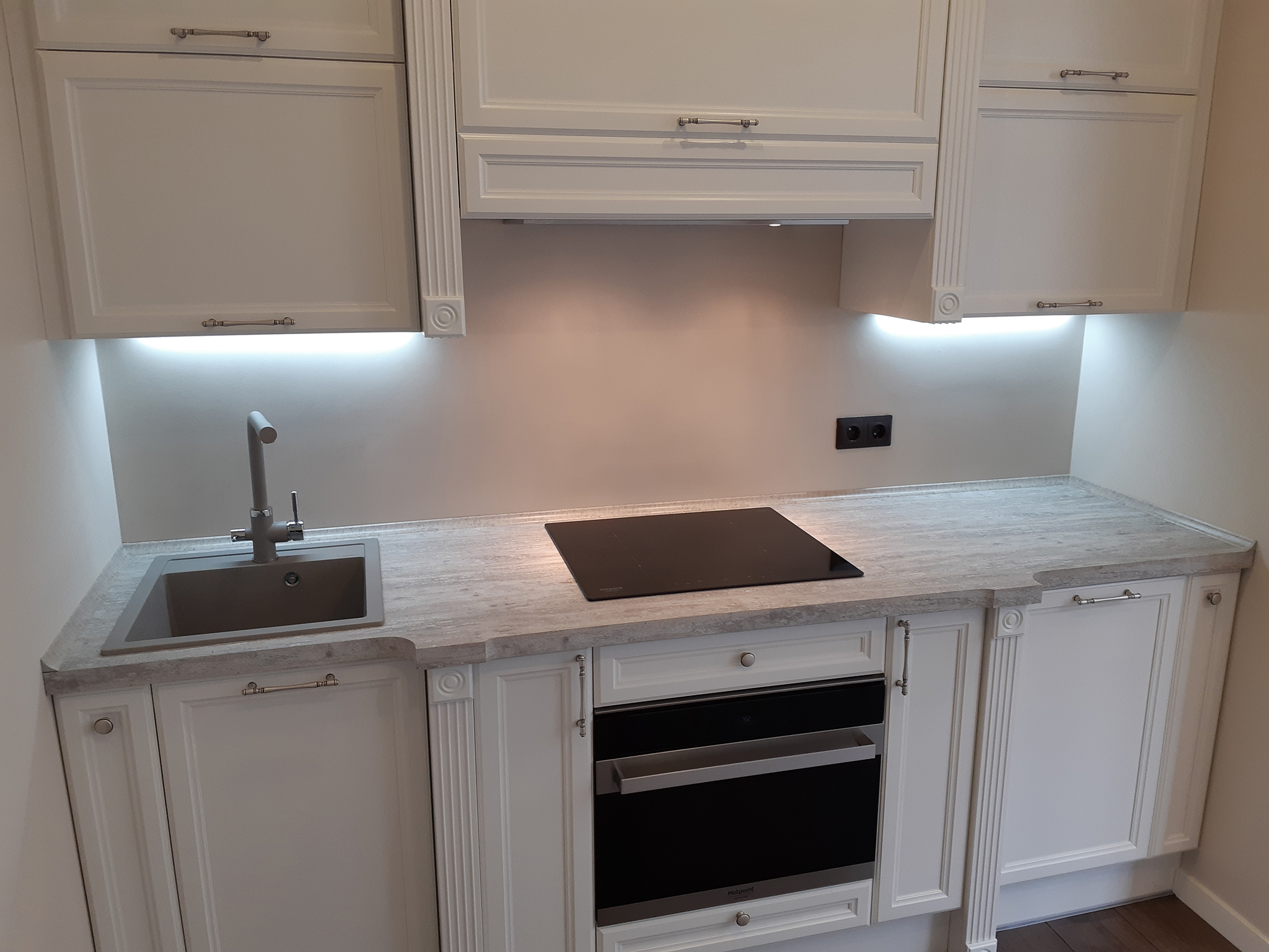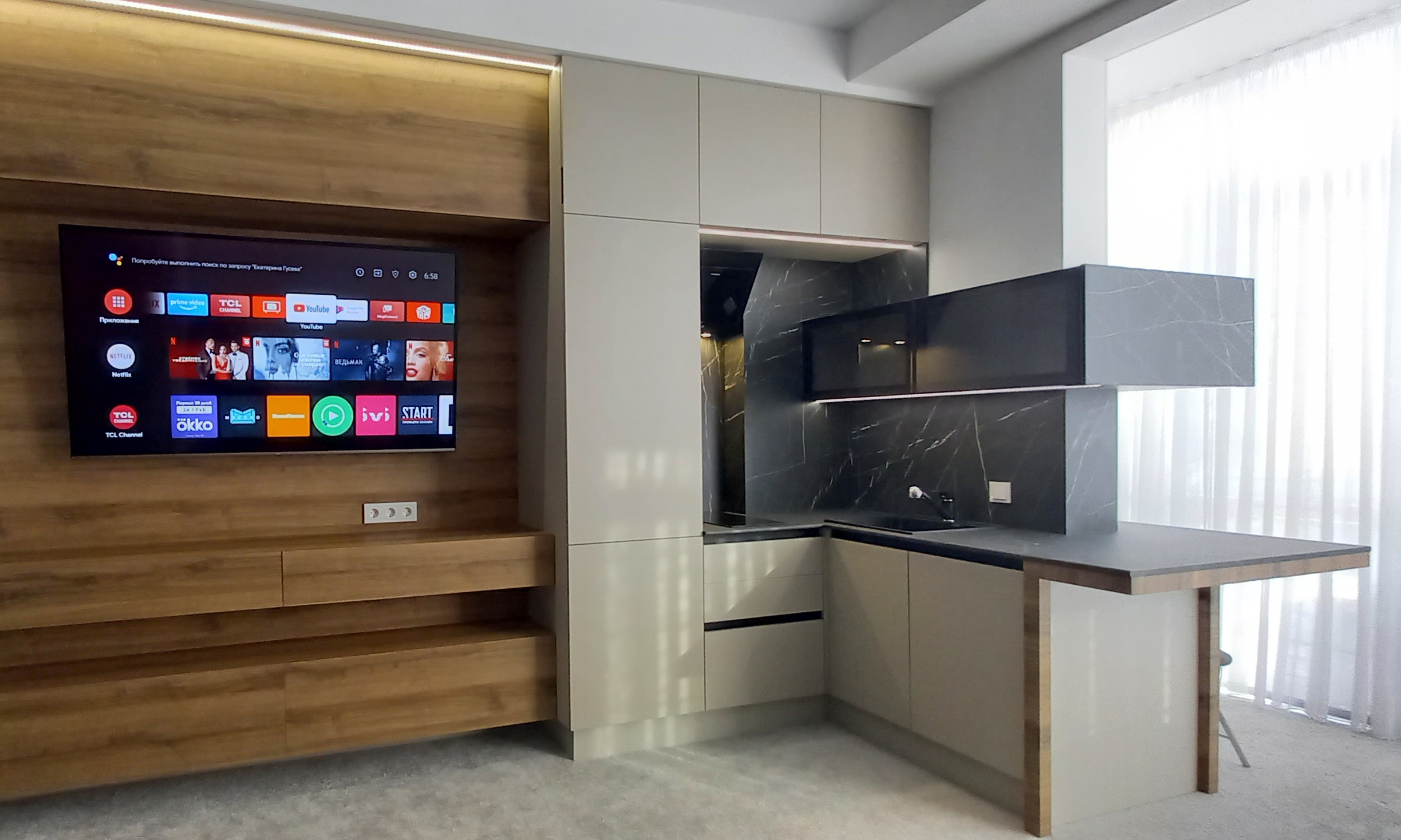 Our specialists are ready to provide their services at every stage of the work. However, it is best to take advantage of their knowledge and skills from the very beginning of the project.The designer-constructor will accurately calculate the area of the kitchen and suggest the optimal layout of the furniture, its number, arrangement, and the material from which it will be made. The master has extensive professional experience, and it is worth following his opinion.Once you have decided on the furniture, you can proceed to the selection of finishing materials for the kitchen. These include tiles, wallpaper, floor coverings, door color and shape, and more.