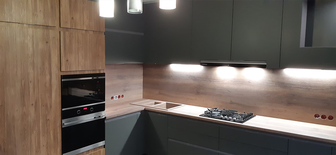 Мы давно изготавливаем кухонную мебель, это могут быть как недорогие кухни, так и роскошные деревянные гарнитуры. Комплекты могут быть выполнены из МДФ, натурального дерева и массива, шпона, ЛДСП. Для покрытия выбирают лучшие материалы, придающие мебели благородный вид. Это модный качественный глянец, элегантный матовый финиш, для которых используются акрил, пластик, ламинирование. Все комплектующие и фурнитура произведены в Европе.